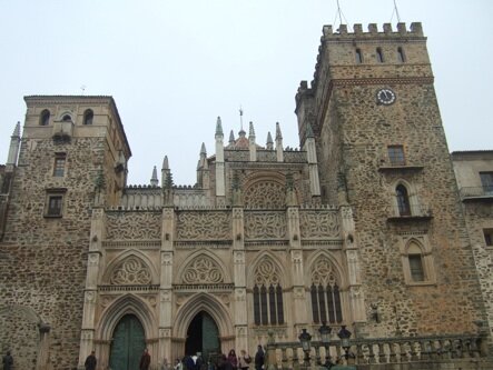 El Santuario comenzó su andadura siendo una rústica ermita y luego un modesto convento habitado en el año 1389 por monjes jerónimos procedentes del monasterio de San Bartolomé, en Lupiana (Guadalajara), donde se fundó años atrás la Orden de los Jerónimos. Fray Fernando Yáñez tomó la iniciativa de poblar la casa de Guadalupe con 31 monjes y se convirtió en el primer prior, inmortalizado por un retrato de Zurbarán. Fue una época de prosperidad realizando nuevos añadidos arquitectónicos como el claustro mudéjar. No deja de ser curiosa la similitud etimológica de Lupiana con Guadalupe. Por cierto, monjes de esa misma orden siglos más tarde poblarían el monasterio de San Lorenzo de El Escorial recién construido, en 1571, por orden de Felipe II.