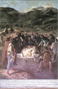 Lo mejor es ir a los orígenes y por eso voy a transcribir la leyenda del encuentro de la imagen y de la fundación del templo en su versión más antigua (se trata de un manuscrito del año 1440 conservado en el Archivo Histórico Nacional) para darnos cuenta de ciertos detalles que pueden aclarar el misterio. Veremos que no da el nombre de Gil Cordero y que la secuencia de los hechos tiene cinco partes o actos: el encuentro de la vaca muerta que no estaba muerta, la aparición de la Virgen en persona para dar un mensaje al pastor, la resurrección del hijo del pastor, el hallazgo de la talla de madera en el sitio indicado y la construcción de la primera ermita. Leamos lo que dice el citado texto en cuanto al primer acto: